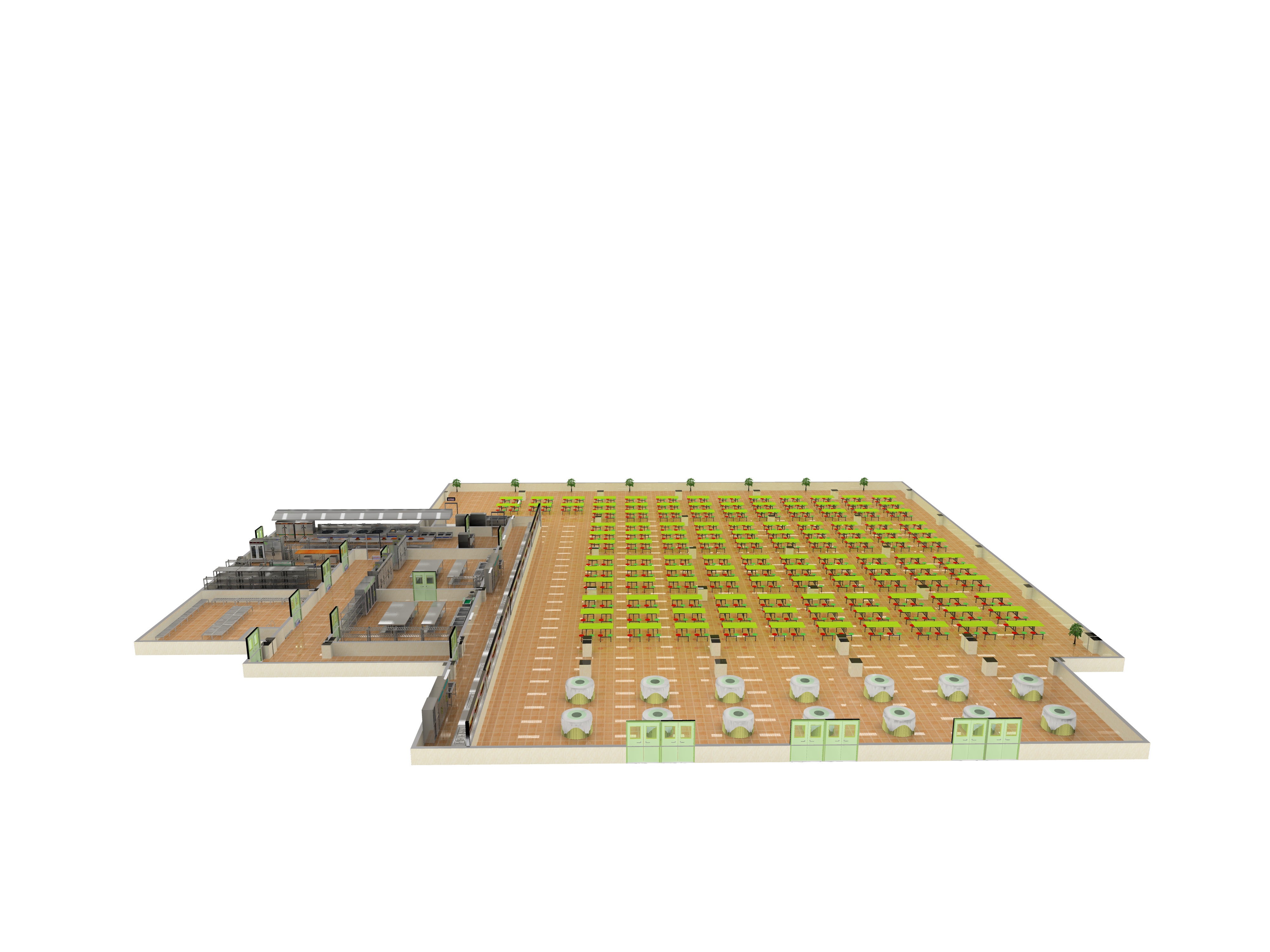 公用廚房是一個(gè)復(fù)雜的系統(tǒng)工程,廚房及延伸空間的建筑結(jié)構(gòu)和設(shè)備是廚房系統(tǒng)的主體,保證廚房設(shè)備和環(huán)境正常運(yùn)行的排煙通風(fēng)、水電、熱源設(shè)施等為配套系統(tǒng)。