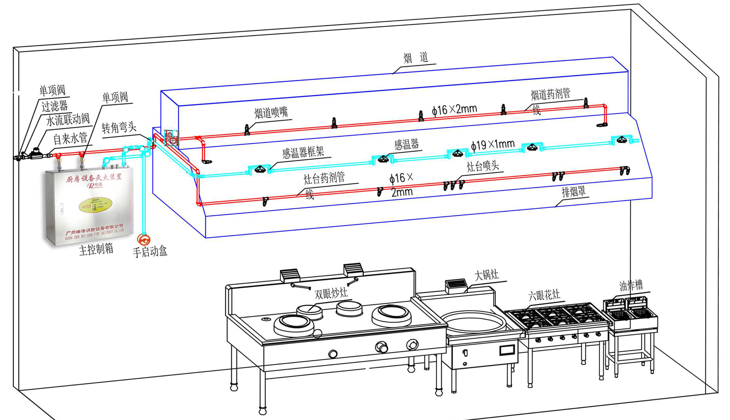 作為成都幼兒園廚房設(shè)備廠家,我們完成了大量的廚房工程和安裝了不少的廚房滅火系統(tǒng),我們認為安裝廚房滅火系統(tǒng)需要注意以下幾個方面。