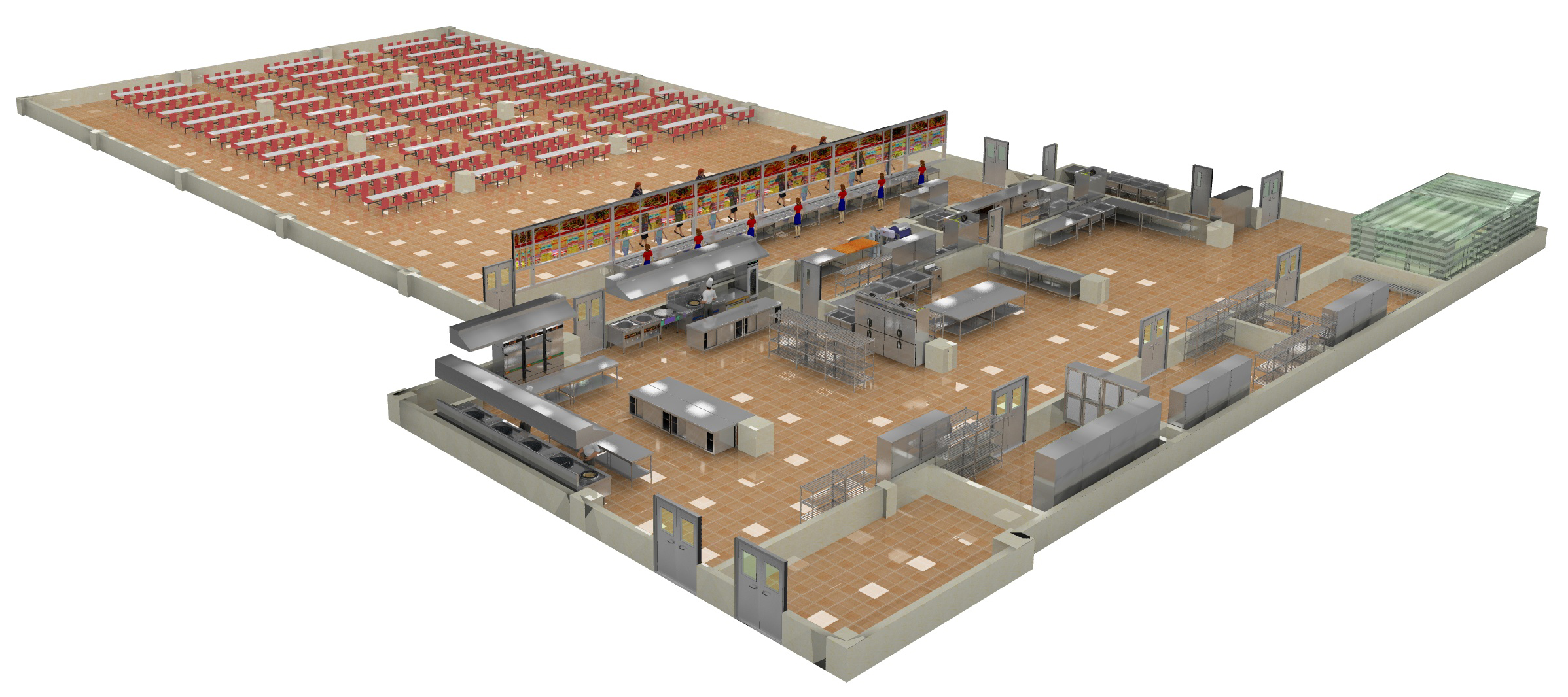 3、監(jiān)督可以通過(guò)分割低墻和透明玻璃窗來(lái)進(jìn)行,這樣你就可以直接觀察和監(jiān)督學(xué)校食堂廚房人員的情況。事實(shí)上,統(tǒng)一整合的三種方式是最好的,三管齊下,監(jiān)督更方便、更直接。