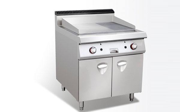 平面煎板又稱平面扒板。其表面是一塊1.5-2厘米厚的平整的鐵板,四周是濾油槽,鐵板下面有一個(gè)能抽拉的鐵盒。熱能來源主要有電和燃?xì)鈨煞N,靠鐵板傳熱使被加熱物體均勻受熱。使用前應(yīng)提前預(yù)熱。