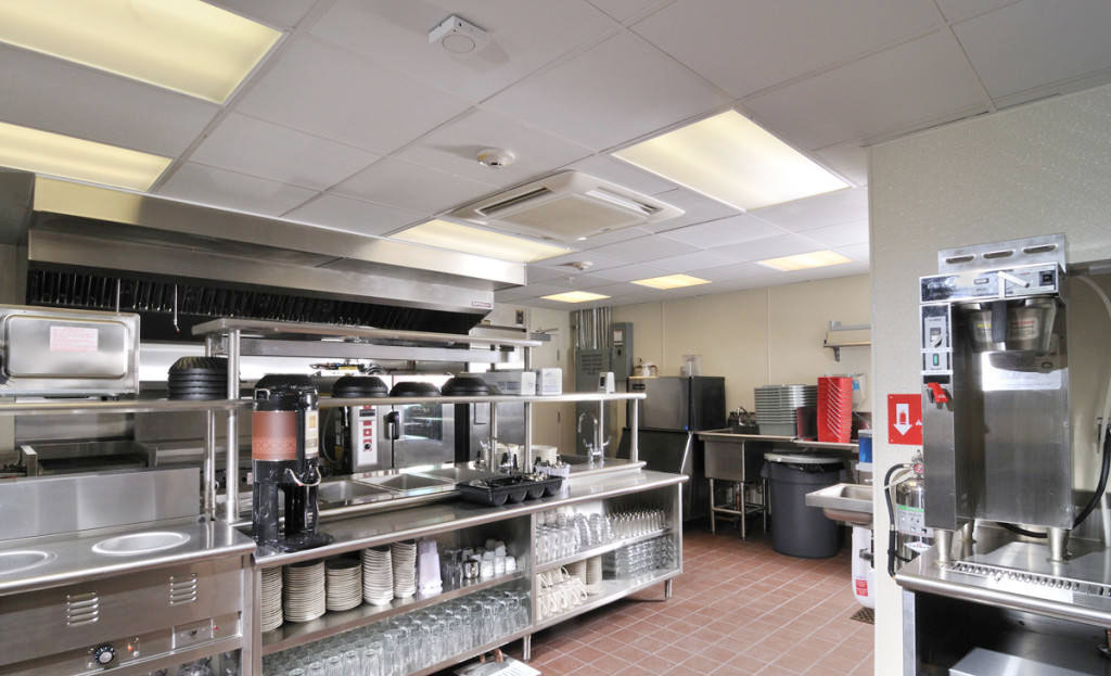 餐廳的燈光重文化,廚房的燈光重實(shí)用。這里的實(shí)用,主要指臨爐炒菜要有足夠的燈光以把握菜肴色澤;案板切配要有明亮的燈光,以有效防止刀傷和追求精細(xì)的刀工;出菜打荷的上方要有充足的燈光,切實(shí)減少雜草混入并流入餐廳等等。廚房燈光不一定要像餐廳一樣豪華典雅、布局整齊,但其作用絕不可忽視。