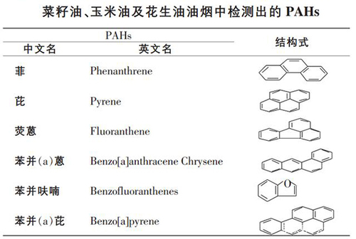 再來看PAHs,PAHs即多環(huán)芳烴。在此前的報道中,就曾指出食用油在高溫過程中會產(chǎn)生具有生殖毒性、致癌性及致突變型的多環(huán)芳烴有機物,但由于不確定物質的具體成分,不少人也是半信半疑。但隨著苯并芘、二苯并蒽等物質在菜籽油中的檢出,人們陸續(xù)開始認識到油煙中PAHs的真面目。根據(jù)對菜籽油、花生油以及玉米油的檢測,油煙中的PAHs主要包括菲、芘、熒蒽、苯并蒽、苯并呋喃以及苯并芘等,其中花生油油煙中的PAHs含量最高,達到了22.8ug/m3,其次是玉米油,含量為5.50ug/m3,菜籽油僅為1.08ug/m3。而玉米油油煙中除了上述物質,還包含了苯并呋喃。