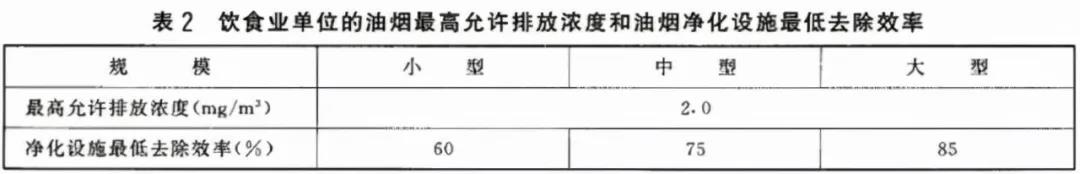 在我國對(duì)油煙排放有著嚴(yán)格的限制,國標(biāo)《飲食業(yè)油煙排放標(biāo)準(zhǔn)(GB18483-2001)》規(guī)定,油煙排放濃度不得超過2.0mg/m3,相應(yīng)凈化系統(tǒng)的凈化效率大型系統(tǒng)不得低于85%,中型系統(tǒng)不得低于75%,小型系統(tǒng)不得低于60%。
