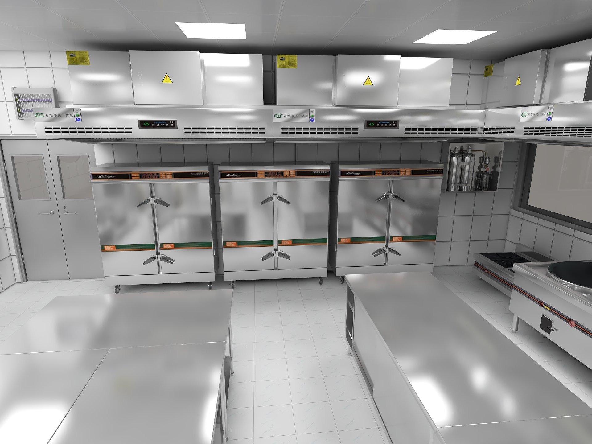 2.油煙機(jī):商用廚房常年處理煤、氣、火,環(huán)境一般比較濕,在這種情況下,燃料燃燒過程中不均勻燃燒和油氣蒸發(fā)容易積聚,形成一定厚度的可燃油層,并附著在墻壁、油煙管道、油煙機(jī)表面,注意安裝不要離爐子太近,也要及時(shí)清潔油煙管道。