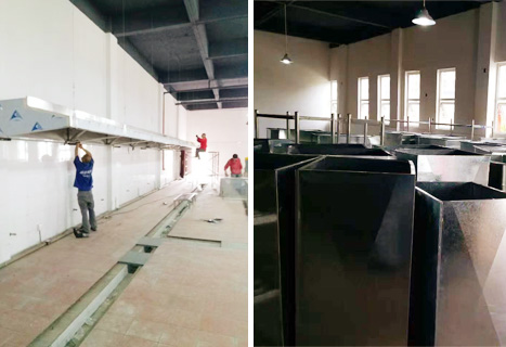 重汽王牌食堂廚具采購項(xiàng)目是中國重汽集團(tuán)旗下的成都公司的員工食堂建設(shè)采購項(xiàng)目。該公司位于青白江區(qū),是四川前100強(qiáng)企業(yè),占地面積2000畝,員工3000余人。此次項(xiàng)目中食堂面積700多平米、項(xiàng)目金額20余萬,主要為了解決全公司2000多員工的早中晚三餐問題。我公司在這個(gè)項(xiàng)目中主要承擔(dān)了食堂平面圖的設(shè)計(jì),食堂廚房廚具配置、廚房排煙系統(tǒng)設(shè)計(jì) ,食堂不銹鋼廚具的制作、運(yùn)費(fèi)、安裝等。在我們精心設(shè)計(jì)的食堂平面圖中,我們把700平米的職工食堂分為消毒存放區(qū)、肉類/蔬菜加工、熱廚區(qū)、庫房、白案區(qū)、餐間、涼菜間,這樣的功能區(qū)域劃分使食堂的功能十分齊全,工作效率大大的提高了。我們提供的不銹鋼食堂廚具中面板全部采用201#1.2mm不銹鋼,層板采用1.0mm不銹鋼,不銹鋼煙罩采用1.0mm不銹鋼,排煙管采用1.0mm優(yōu)質(zhì)鍍鋅板制作。由于我們提供的不銹鋼食堂廚具制作精良、質(zhì)量過硬、而安裝施工過程經(jīng)驗(yàn)豐富,而受到了王牌汽車集團(tuán)的領(lǐng)導(dǎo)和員工的肯定和贊揚(yáng)。