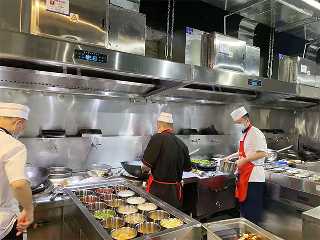 使用開放式廚房廚具一定要加強通風排煙,否則飄到餐廳的油煙會影響就餐環(huán)境和食客的心情。