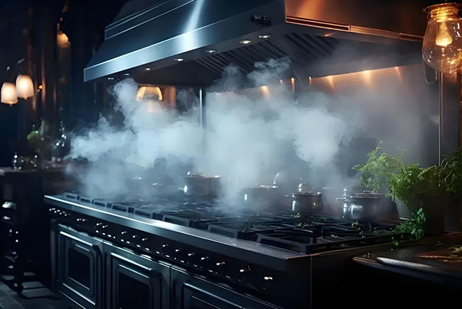 廢氣主要是油煙,蒸汽,熱氣,濕氣,還有下水道散發(fā)的霉味,柴油散發(fā)的氣味,滲漏的燃?xì)獾龋饕ㄟ^排煙罩排到室外,沒有排煙罩的工作間靠通風(fēng)設(shè)備派出。例如,粗加工間,海鮮暫養(yǎng)間,殺魚間濕氣大,有腥味,不及時(shí)通風(fēng)換氣,過于潮濕就容易發(fā)生霉變,要及時(shí)清掃,及時(shí)通風(fēng),排除濕氣。