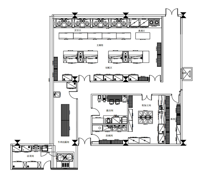 3.餐品經(jīng)營特點決定廚房面積,如面食快餐、火鍋、烤肉等特色食品經(jīng)營,都要根據(jù)自己的計劃,確定廚房的面積。