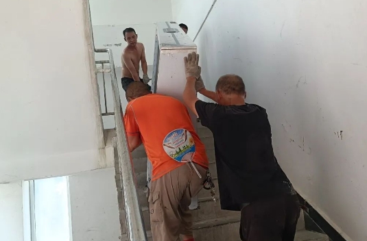 當貨車到達工地后,無論現(xiàn)場的安裝條件怎樣的困難,也無論工地的溫度有多高,我們都會想盡辦法,把設備卸下來,然后再搬進廚房工地。當你在空調室抱怨空調不制冷時,在工地現(xiàn)場的師傅們可是在滾燙的天氣下大汗淋漓的搬運和安裝設備,衣服褲子全都濕透了。