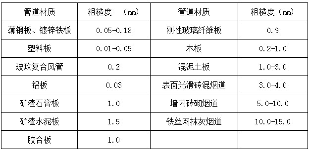 不同材質(zhì)的管道內(nèi)壁的絕對(duì)粗糙度系數(shù)見(jiàn)下表、